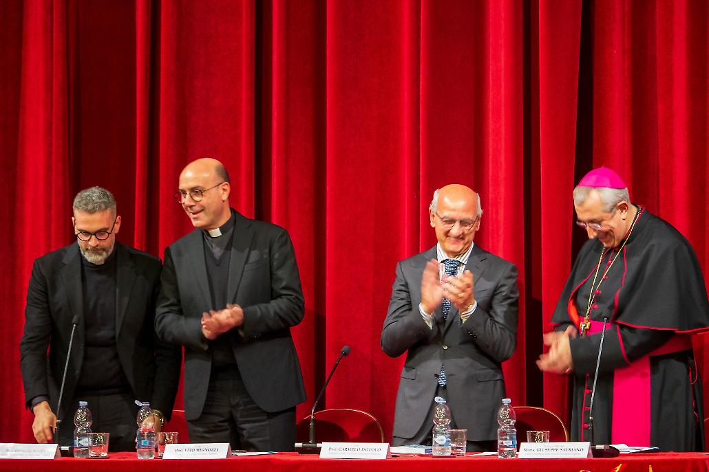 Nel suo intervento, mons. Satriano ha rivolto un ampio saluto alle autorità religiose e accademiche presenti, sottolineando l’importanza della comunione e della collaborazione tra diocesi, istituti religiosi, università e amministrazioni pubbliche. Ha ringraziato i superiori maggiori degli ordini religiosi, i formatori dei seminari e i rappresentanti delle istituzioni civili e militari, ricordando che la loro presenza costituisce un “segno vivo di incoraggiamento”.