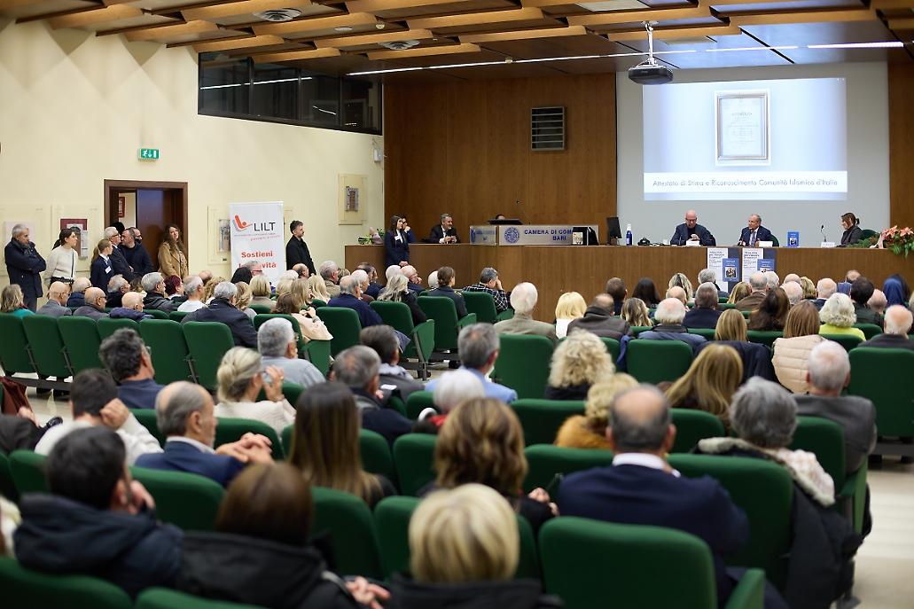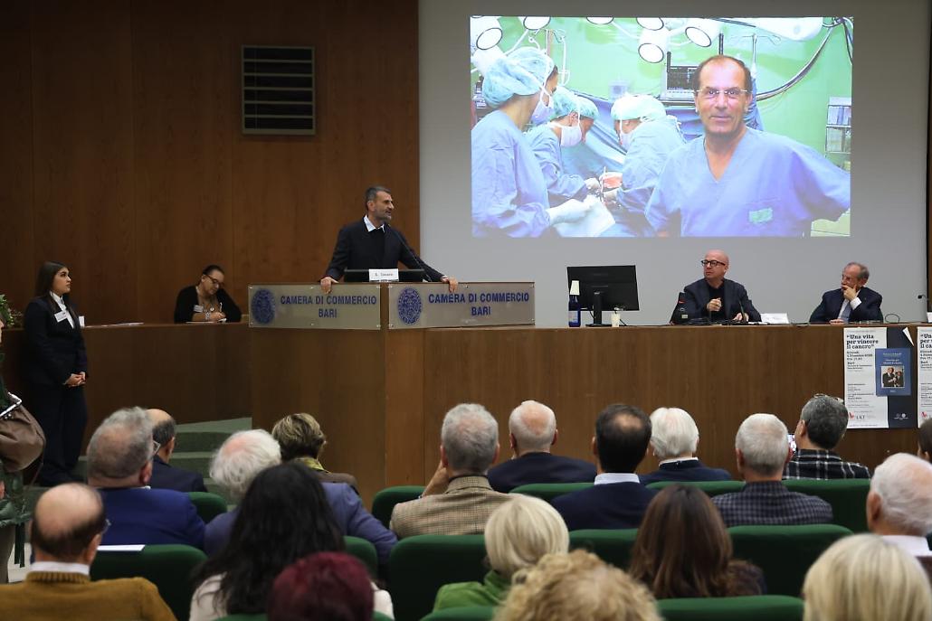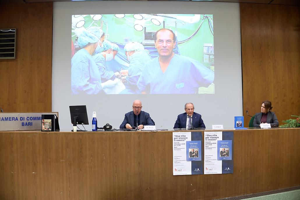 BARI - La grande sala “Sandro Ambrosi” della Camera di Commercio ha accolto ieri oltre 250 partecipanti per la presentazione di “Una vita per vincere il cancro”, il libro edito da Adda Editore che ripercorre la storia personale e professionale del senologo e oncologo barese Francesco Schittulli, intervistato dallo scrittore e giornalista Danilo Quinto. L’appuntamento, più che un semplice evento letterario, si è trasformato in un racconto pubblico delle tappe che hanno segnato la carriera del presidente nazionale della LILT, accompagnato da una selezione di immagini proiettate sullo schermo.