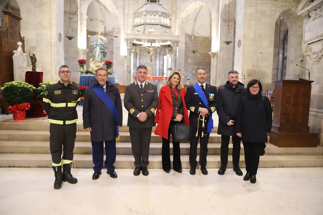 BARLETTA - Si è svolta nella mattinata del 4 dicembre la celebrazione solenne dedicata a Santa Barbara, Patrona della Marina Militare e dei Vigili del Fuoco. La funzione, officiata nella Concattedrale di Barletta dal parroco don Francesco Fruscio, ha visto la partecipazione del Prefetto Silvana D'Agostino, insieme alle autorità civili e militari del territorio, al personale della Capitaneria di porto di Barletta, al Reparto Provinciale del Corpo nazionale dei Vigili del Fuoco, oltre a personale in congedo e alle rappresentanze delle associazioni combattentistiche e d’arma.