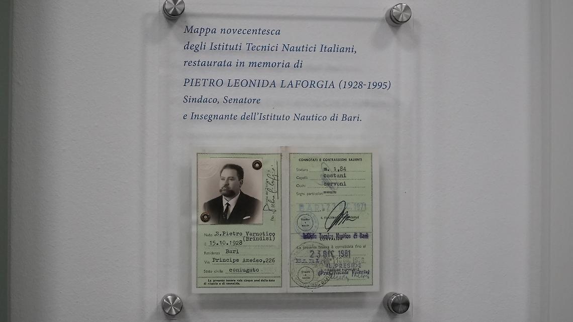 A seguire l’iniziativa si è spostata nell’ex Istituto Nautico di via Abate Gimma, oggi in fase di trasformazione in residenza universitaria. Per onorare gli anni di insegnamento del padre, i figli Laforgia hanno restaurato e riposizionato un manufatto storico, una grande mappa delle sedi degli Istituti Nautici Italiani, insieme a una targa commemorativa destinata alla sala lettura del piano rialzato. L’intervento rientra nel progetto di recupero dell’immobile gestito dall’ADISU, che da ieri diventa una residenza universitaria da 80 posti letto. Presente alla cerimonia anche il presidente ADISU Puglia, Alessandro Cataldo.
