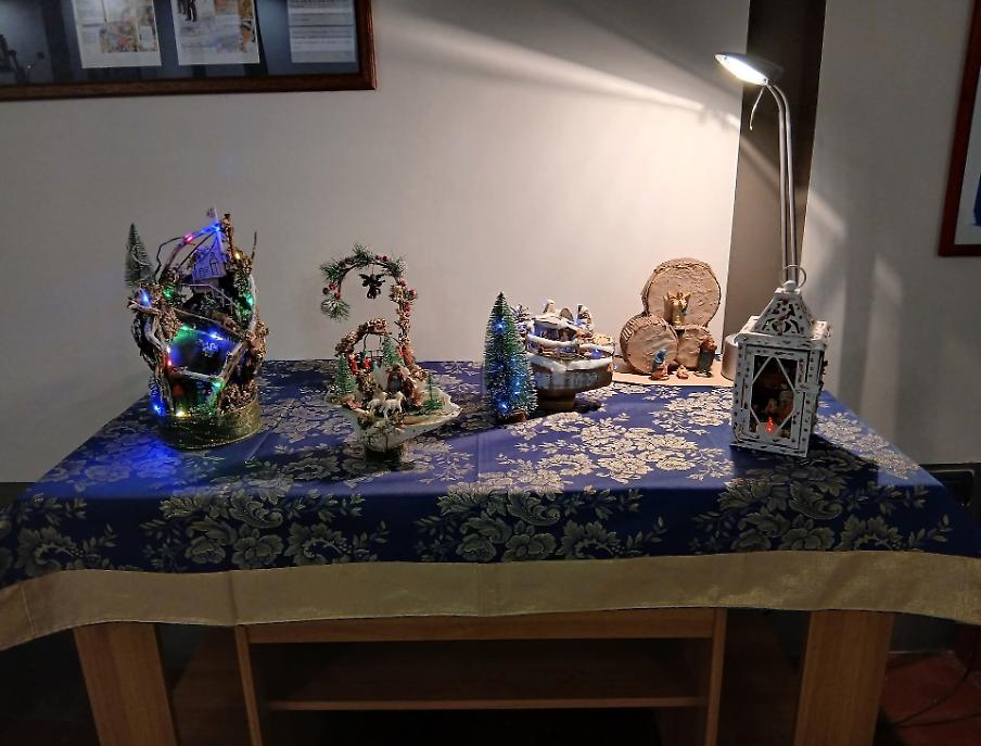In mostra figurano le opere di Alessandro Maiorano, del compianto Giandamiano Boccuni di Taranto e del socio Pietro Silvestri. I presepi possono essere visitati liberamente negli orari di apertura della sede. Il lavoro di Boccuni, come da consuetudine, è collocato nella vetrina dell’associazione, dove accoglie i visitatori come elemento distintivo dell’allestimento.