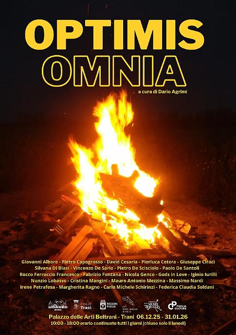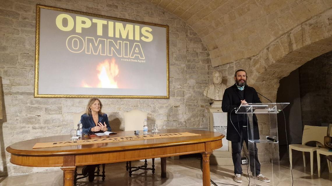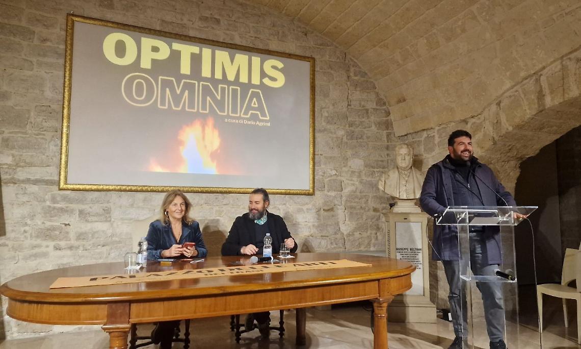 TRANI - È stata inaugurata nelle sale di Palazzo delle Arti Beltrani la mostra “Optimis Omnia”, prima curatela di Dario Agrimi, artista e docente dell’Accademia di Belle Arti di Roma. L’anteprima, riservata alla stampa e agli artisti coinvolti, è stata introdotta dal direttore del Palazzo, Niki Battaglia, dall’assessore alle Culture Lucia de Mari e dallo stesso curatore, che ha illustrato le linee guida del progetto e la costruzione del percorso espositivo.