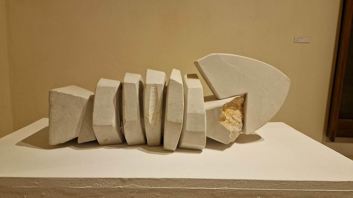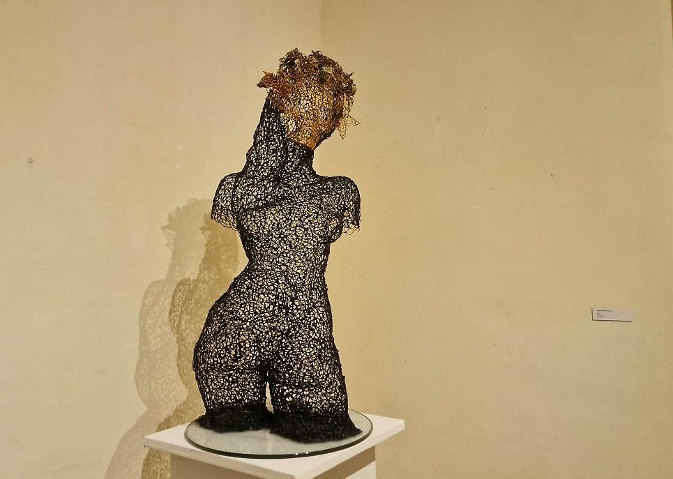 La pietra di Trani ritorna con Mauro Antonio Mezzina (“Origini”, 2023), mentre Massimo Nardi (“Mutamenti con ponte”, 2006) combina materiali eterogenei in una stratificazione che unisce memoria e visione. Irene Petrafesa (“L’ombra del giorno”, 2025) riflette sulle tracce del tempo, mentre Margherita Ragno concentra la ricerca sul corpo femminile liberato da stereotipi. Il percorso si chiude con il dittico di Carlo Michele Schirinzi (“Sindoni di femmine d’angelo in caduta”, 2025) e con la scultura in acido polilattico di Federica Claudia Soldani (“Death”, 2022), che interroga fragilità e resistenza.