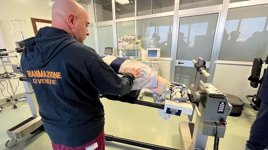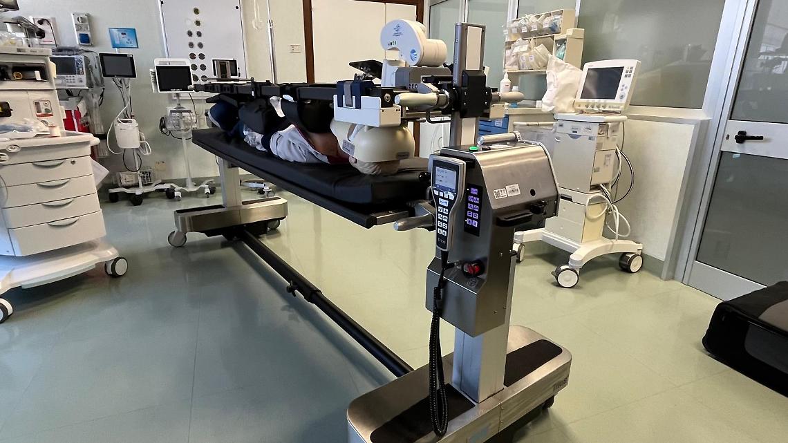 BARI - All’ospedale Di Venere è entrato in funzione il primo tavolo operatorio rotante installato in Italia, una piattaforma progettata per la neurochirurgia e la chirurgia della colonna, pensata per interventi sia traumatici sia degenerativi. La novità principale sta nella possibilità di agganciare e ruotare il paziente direttamente all’interno della struttura, permettendo di ottenere il posizionamento chirurgico più adeguato senza necessità di spostamenti manuali, con un evidente incremento della stabilità e della sicurezza.