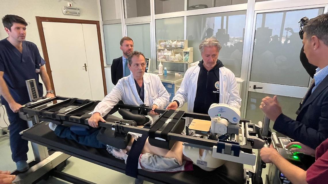 Per i pazienti politraumatizzati, il tavolo consente inoltre interventi su diversi segmenti della colonna – dal tratto cervicale a quello lombare – senza modificare l’assetto corporeo. Il dottor Romanelli sottolinea come la piattaforma sia già pienamente operativa: “In una settimana è stata utilizzata in sei interventi. In un caso, una paziente con una frattura cervicale complessa richiedeva un doppio accesso. Il braccio elettromeccanico ha consentito una gestione millimetrica della testa, con rotazioni fino a 180 gradi, garantendo la massima precisione”.