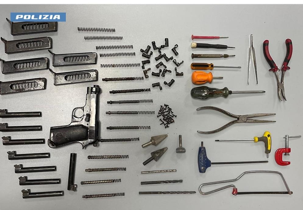 Nel corso dei controlli, un uomo di 60 anni è stato fermato mentre si allontanava con atteggiamento sospetto. Addosso aveva una pistola semiautomatica Beretta modello 35 calibro 7.65, con caricatore privo di munizioni. La successiva perquisizione domiciliare ha consentito di recuperare numerosi componenti di armi da fuoco e attrezzi destinati alla loro modifica, portando al suo arresto per i reati contestati.