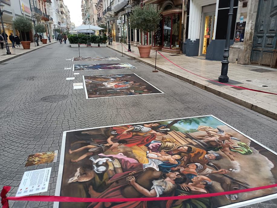 TARANTO - È l’arte che nasce sull’asfalto, fragile e potentissima, a dare il via simbolico all’ultima parte dell’attesa del Natale. Nel giorno dedicato a Santa Lucia, via Di Palma si è trasformata in un museo a cielo aperto, grazie alle esposizioni dei madonnari invitati dal Comune di Taranto nell’ambito del programma ufficiale del Natale di Taranto.