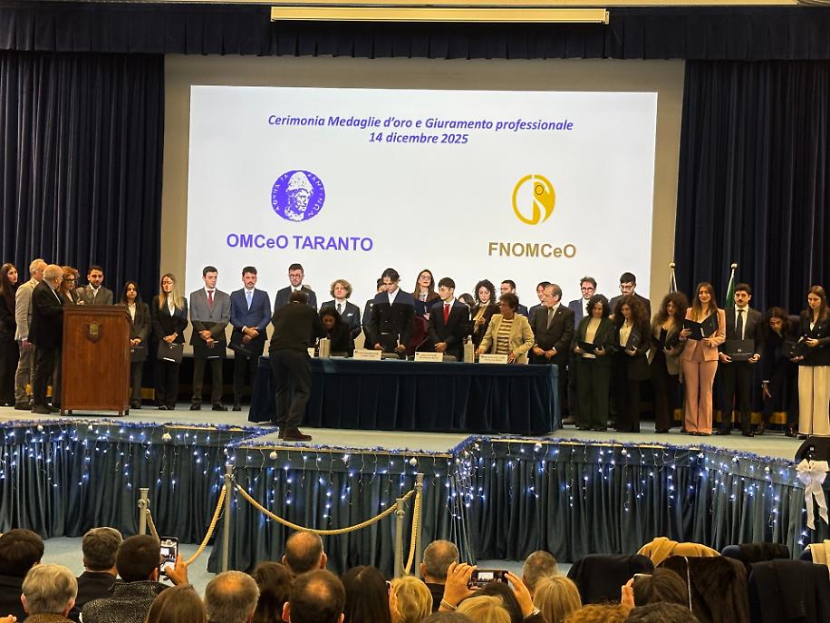 La cerimonia, alla presenza delle autorità civili e militari, è stata presieduta dalla presidente dell’Ordine di Taranto, Marialetizia Marra, e si è sviluppata in due momenti distinti ma complementari: la consegna delle onorificenze in oro ai medici e agli odontoiatri che hanno raggiunto il traguardo dei 50 anni di carriera e il giuramento dei professionisti neo iscritti all’Albo. Tra i rappresentanti istituzionali presenti anche l’ammiraglio Salvatore Mendicini, del Comando interregionale Marittimo Sud, insieme ai componenti del Consiglio direttivo dell’Ordine.