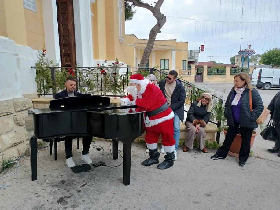 In molti si sono fermati ad ascoltare le melodie eseguite dal musicista, creando un momento di condivisione che ha coinvolto anche numerose famiglie con bambini. Per i più piccoli non è mancata l’accoglienza di Babbo Natale, che ha salutato i presenti e partecipato all’atmosfera di festa.