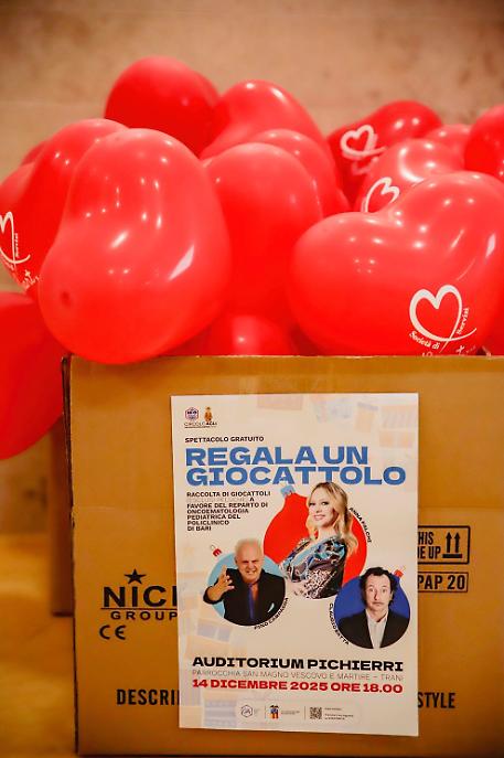 L’evento ha registrato il tutto esaurito, annunciato già nei giorni precedenti. Per accedere era richiesto un gesto concreto di solidarietà, la donazione di un giocattolo nuovo, con l’esclusione dei peluche. I doni raccolti saranno consegnati il 18 dicembre alle 12.30 ai bambini ricoverati nel reparto di Oncoematologia Pediatrica del Policlinico di Bari, grazie alla collaborazione con APLETI, come segno di vicinanza anche alle famiglie impegnate in percorsi complessi e delicati.