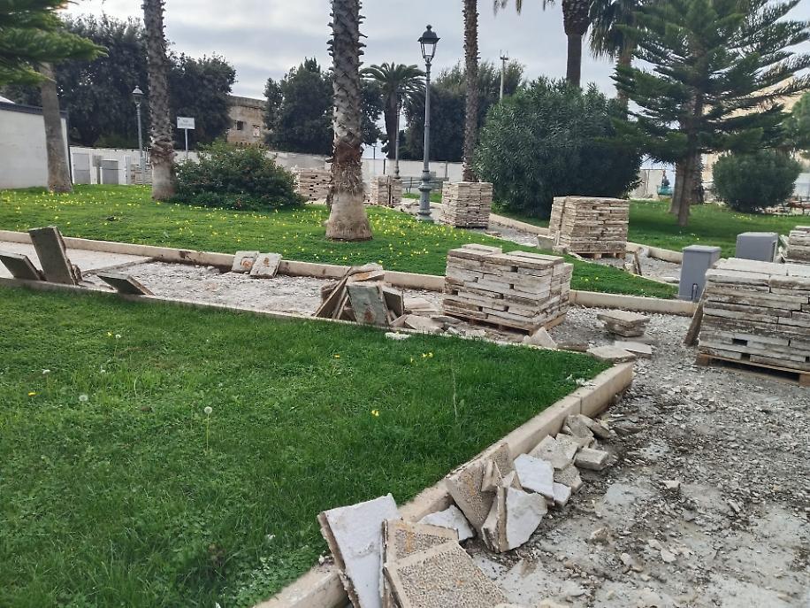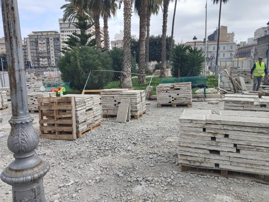 Il giardino centrale (dove è stato installato il primo cantiere) vedrà la piantumazione di nuovi alberi, mentre le grandi palme verranno spostate in altra zona della piazza, che avrà nuova vita all’insegna della completa pedonalizzazione, diventando così il nuovo salotto cittadino.