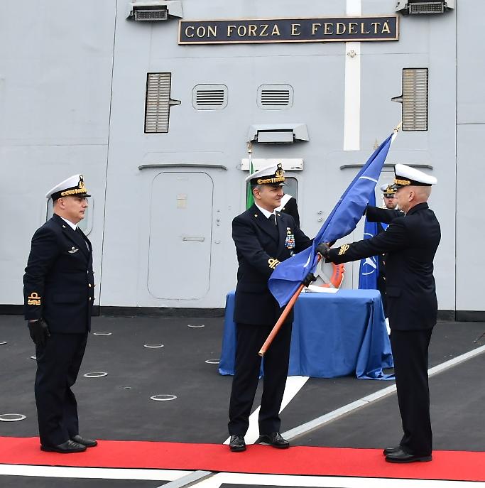 TARANTO – Si è svolta nei giorni scorsi nella base navale di Taranto la cerimonia che ha segnato il passaggio di consegne al comando del Gruppo Marittimo NATO 2, al termine di 6 mesi consecutivi di guida italiana. A bordo dell’ITS Carlo Bergamini, il contrammiraglio Francesco Iavazzo ha ceduto ufficialmente l’incarico al contrammiraglio Cristian Nardone, alla presenza del contrammiraglio Luca Pasquale Esposito, capo di gabinetto del NATO MARCOM.