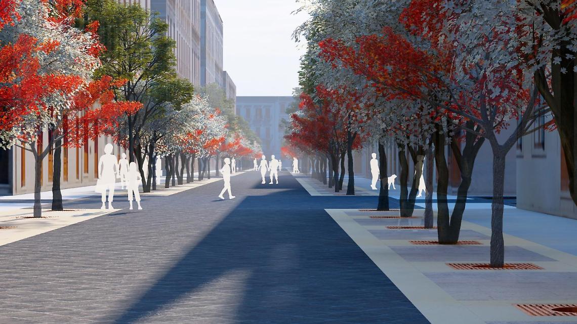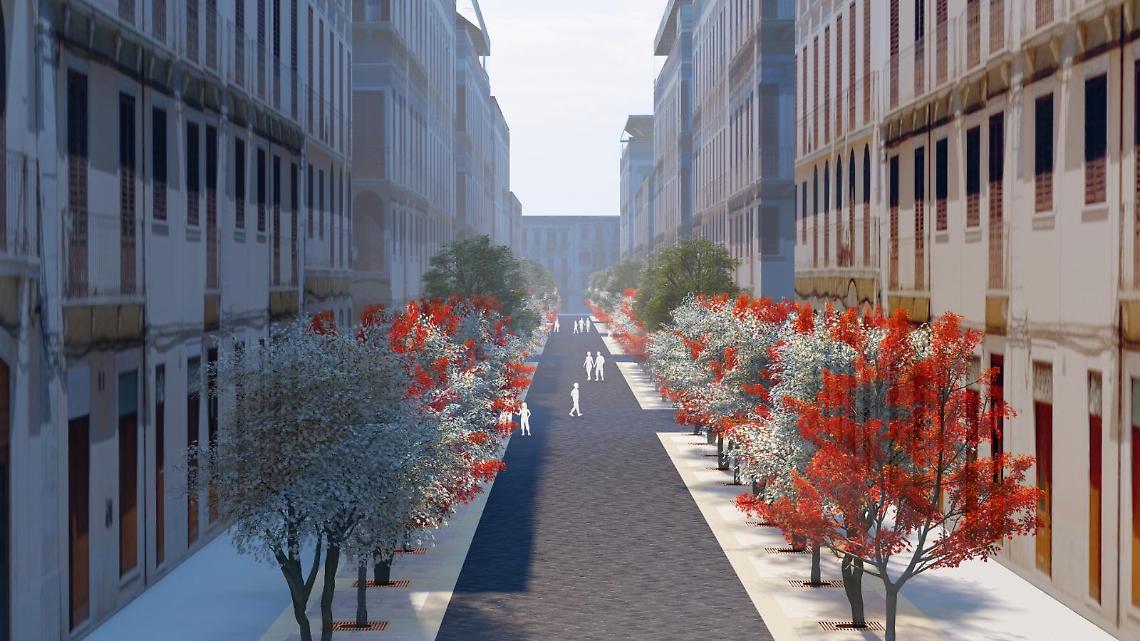 A definire gli spazi tra la parte centrale e le aree pedonali saranno le nuove alberature, con la messa a dimora di Lagerstroemia a fioritura rosa e bianca e di Prunus cerasifera Pissardii, dai fiori bianchi e rossi, richiamo simbolico ai colori della città. L’intero progetto prevede, complessivamente, la piantumazione di 100 alberi lungo tutti gli isolati di via Argiro.
