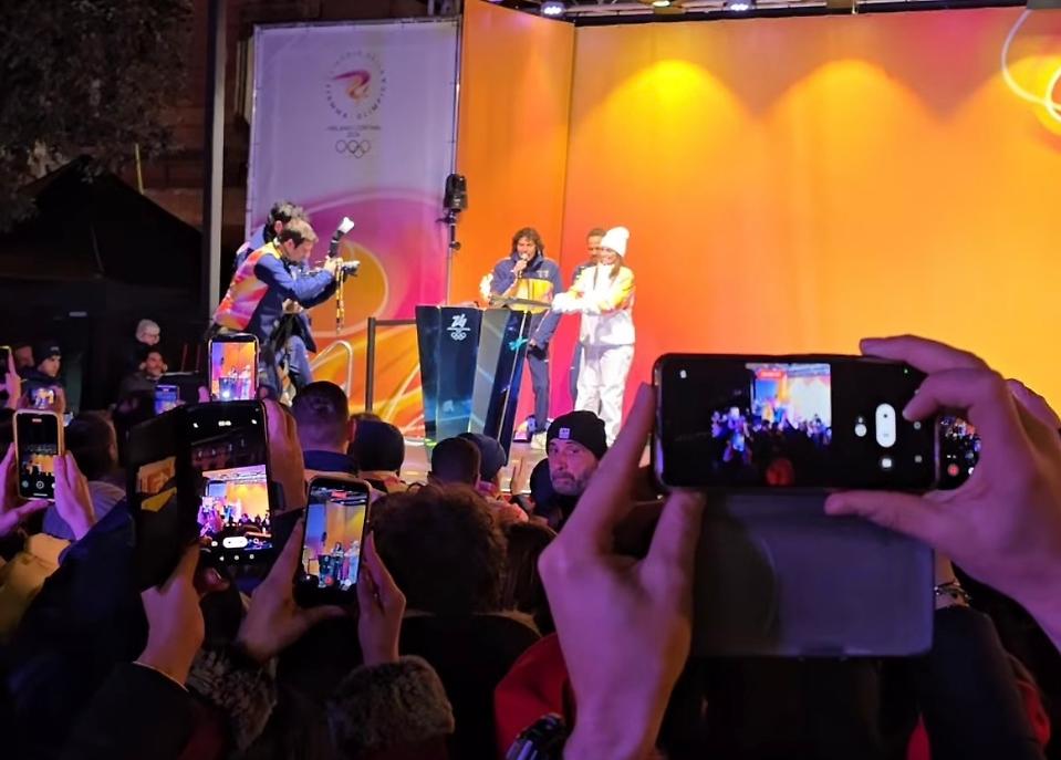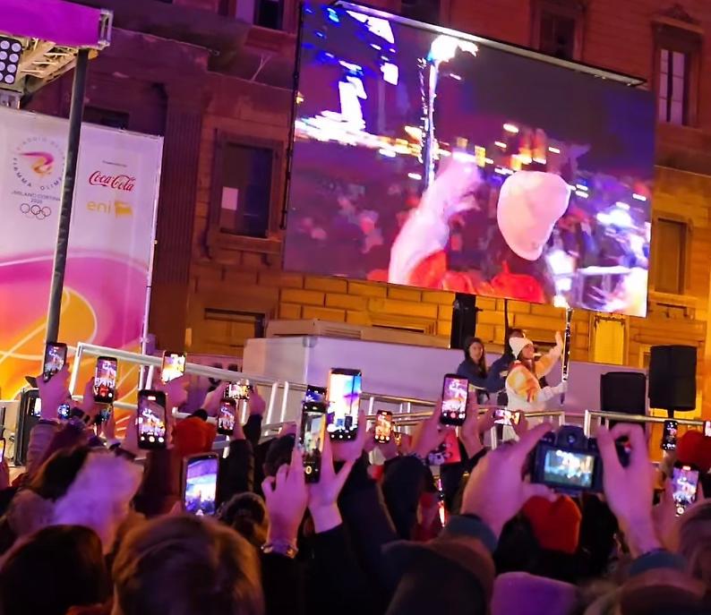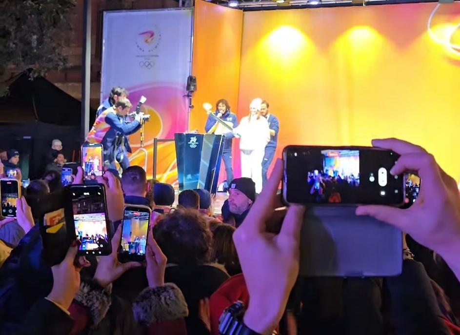 Piazza Archita, dove era funzionante il villaggio olimpico, era brulicante di gente sin da alcune ore dall’arrivo dell’ultimo tedoforo, fra discorsi di autorità, karaoke, balletti e generoso lancio di gadget. Dal lato dei giardini di piazza Garibaldi un gruppo di giovani ha ininterrottamente urlato slogan per la libertà in Palestina, della quale hanno mostrato la bandiera.
