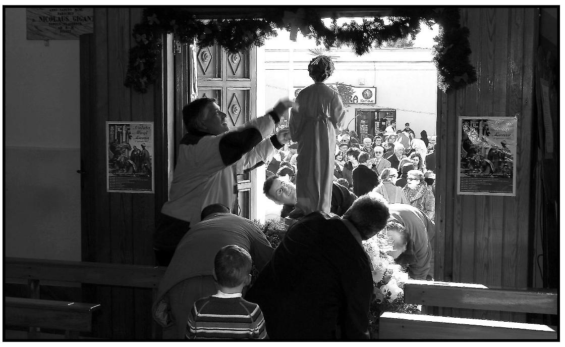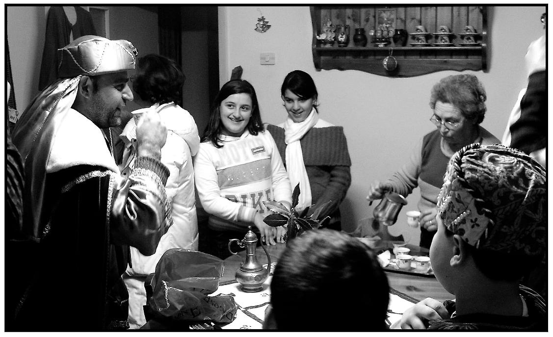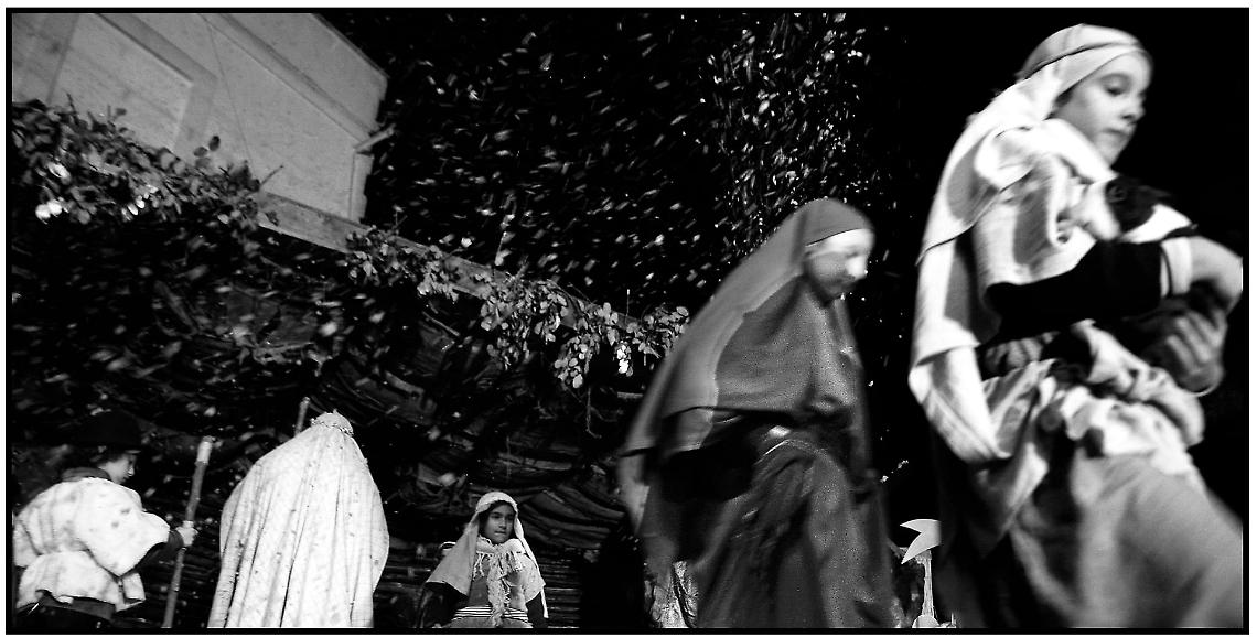 Le fotografie non si limitano a documentare un evento, ma ricostruiscono un clima emotivo, quello del Natale vissuto nei quartieri, tra attese silenziose, volti segnati dal tempo e sguardi pieni di stupore. Nonostante il mutare del tessuto sociale di Lama e l’evoluzione dei costumi, la Calata dei Magi continua a rimanere un punto fermo, capace di rinnovarsi senza perdere il legame con le proprie origini.