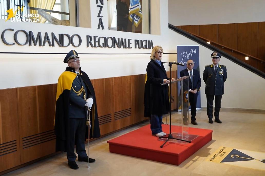 BARI – Visita istituzionale, martedì 20 gennaio, per l'on. Sandra Savino, sottosegretario di Stato al Ministero dell’Economia e delle Finanze, che si è recata presso la caserma “M.A.V.M. Magg. Giovanni Macchi”, sede del Comando Regionale Puglia della Guardia di Finanza.