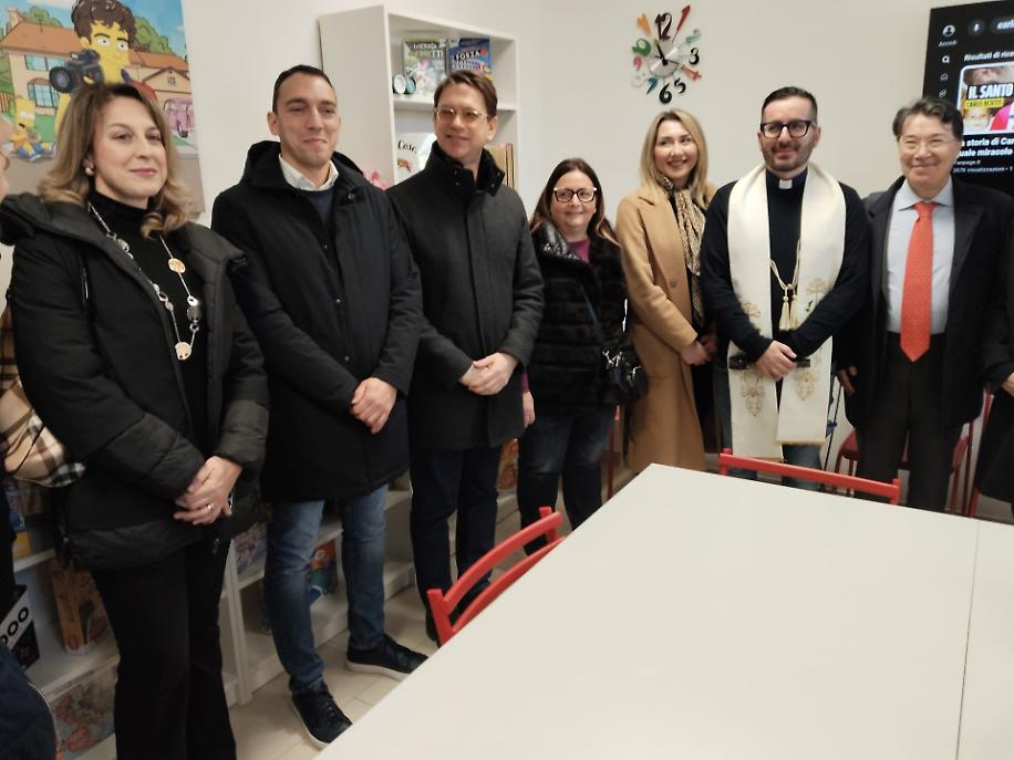 Il successivo appuntamento della giornata è stato nei locali della parrocchia intitolata agli Angeli Custodi, nei pressi della strada per Martina Franca, per l’inaugurazione dell’aula multimediale, intitolata a Carlo Acutis, un santo dei tempi nostri che utilizzava i moderni mezzi informatici. “Presto daremo luogo in questo spazio a un laboratorio di lettura per i bambini della fascia d’età fra i 6 e i 7 anni, successivamente mettendoli in condizione di realizzare dei video utilizzando la piattaforma di Tik-Tok – ha detto il parroco don Alessandro Argentiero - Cercheremo di far utilizzare ai nostri ragazzi questo laboratorio al passo con i tempi, facendoli divertire e sperimentando il web nel modo giusto, anche come strumento di comunicazione della fede. Non ci fermeremo a questo, senza dubbio. Speriamo ora di ottenere dei tablet da collegare alla smart tv e metterli a disposizione dei bambini della parrocchia. Rivolgo infine un appello a uomini e donne di buona volontà per aiutarci a dare carezze e speranza ai bambini della parrocchia: siamo pronti ad accoglierli”.