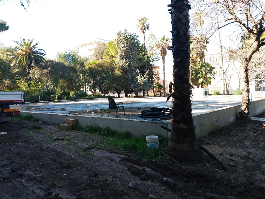 La struttura sportiva sta sorgendo al posto dell’ex piscina cosiddetta degli alleati, che fu realizzata tra il 1944 e il 1945 dai militari anglo-americani e per qualche tempo sede di gare sportive. Da decenni non più funzionale, la piscina, ora opportunamente colmata, è stata visibilmente segnata dall’usura del tempo e dall’abbandono, che l’hanno ridotta simile a un immondezzaio. Diversi sono stati i tentativi da parte delle passate amministrazioni comunali per rivitalizzare quegli spazi, utilizzati per qualche tempo come giardino acquatico, ma ben presto caduti nel degrado per la mancanza di manutenzione.