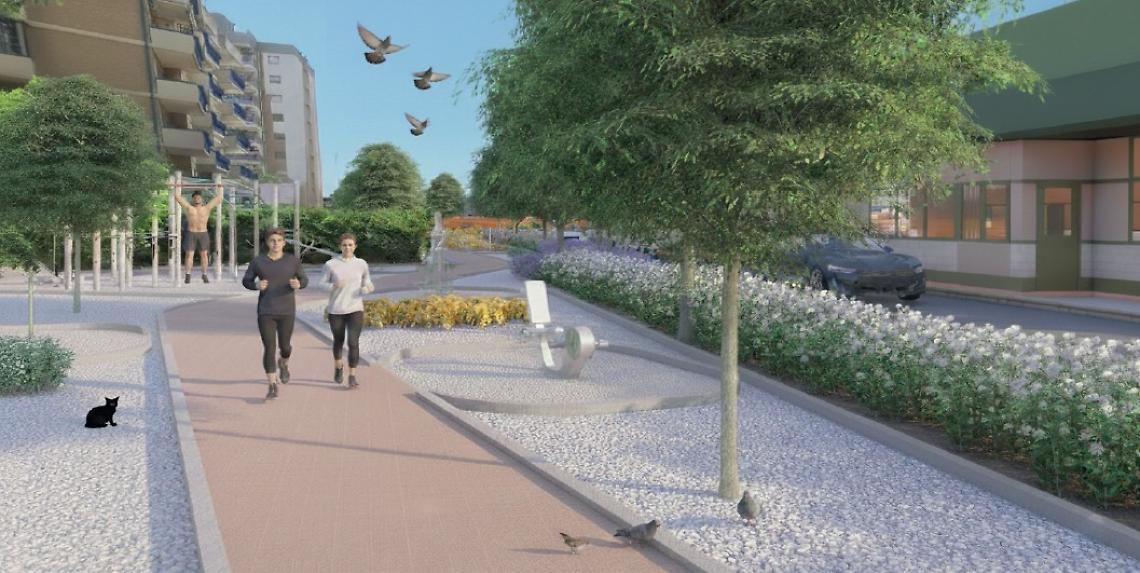 Complessivamente verranno ceduti gratuitamente al Comune circa 1.800 metri quadrati di spazi pubblici. Il piano comprende anche la riqualificazione di un relitto stradale oggi inutilizzato che sarà inglobato nel verde attrezzato per creare un percorso continuo destinato a jogging e attività all’aperto.