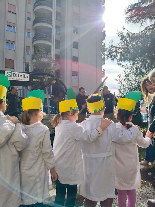 I 4 alberi, battezzati Aristosseno, Luigi, Adele e Annita, sono stati affidati ufficialmente alla comunità scolastica dalle mani di Rossella Ninfole, che li ha consegnati al dirigente Francesco Urso. Docenti e alunni della sezione infanzia ed elementare hanno organizzato un’accoglienza articolata, trasformando la cerimonia in un momento collettivo di riflessione.