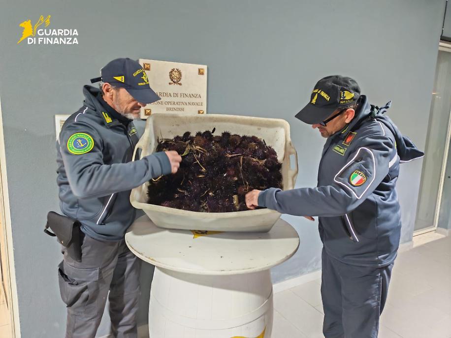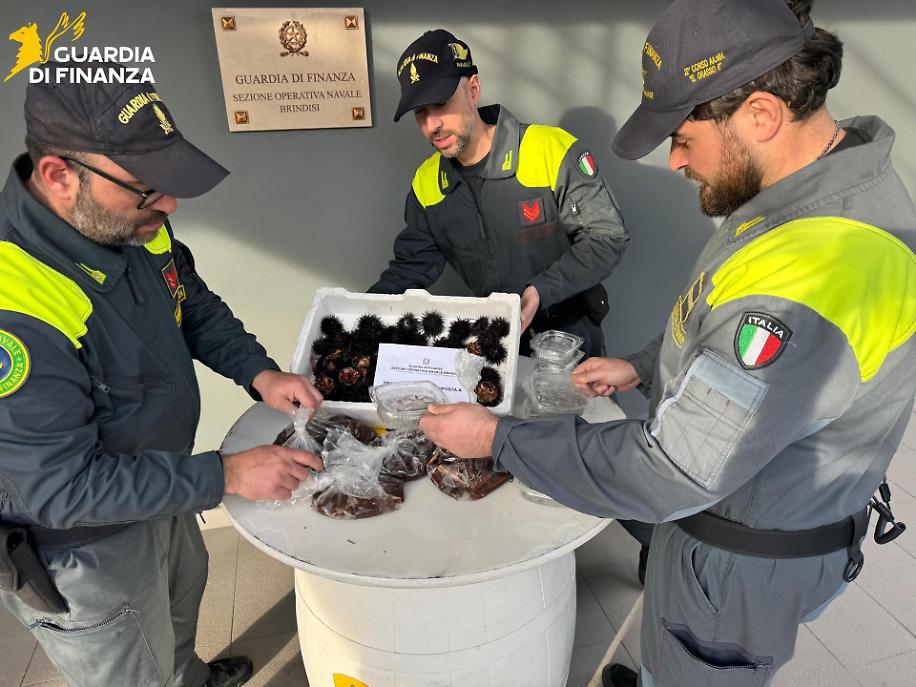 Nel corso delle verifiche mirate contro la pesca di frodo e la detenzione e vendita di specie protette, i finanzieri hanno sequestrato 13,5 chilogrammi di datteri di mare, 3 chilogrammi di novellame e 45 chilogrammi di ricci di mare.