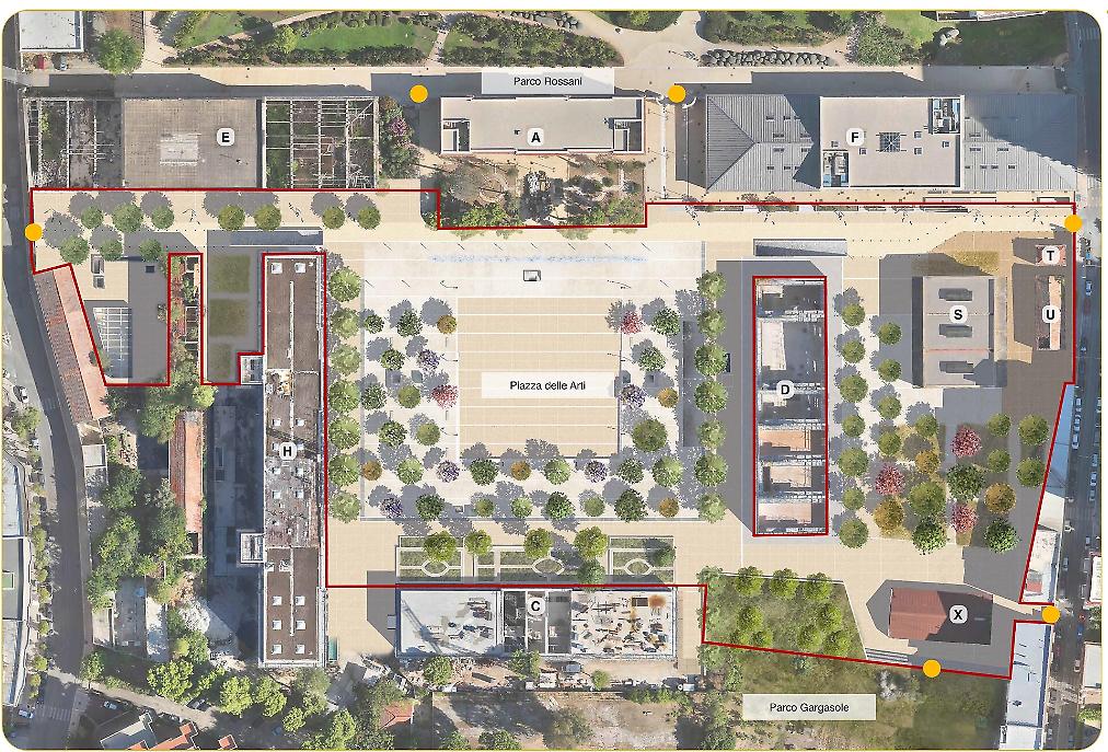 Le scelte progettuali sono state condivise con la Soprintendenza e improntate alla tutela delle strutture originarie, in continuità con il restauro già realizzato per gli edifici destinati a ospitare il polo bibliotecario regionale. La realizzazione degli edifici D e H è sostenuta con 18 milioni di euro di fondi FSC.