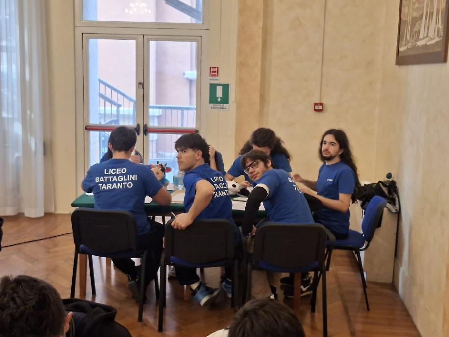 La gara disputata nel capoluogo ionico si è svolta presso il Circolo Ufficiali della Marina Militare e ha visto la partecipazione di 8 istituti provenienti dalla provincia di Taranto e da altre realtà pugliesi. In competizione, oltre al Battaglini, il Liceo Banzi-Bazoli di Lecce, il Liceo De Sanctis-Galilei di Manduria, il Liceo Galilei di Bitonto, il Liceo Stampacchia di Tricase, il Liceo Tito Livio di Martina Franca, il Liceo Scacchi di Bari e il Liceo Volta di Foggia.