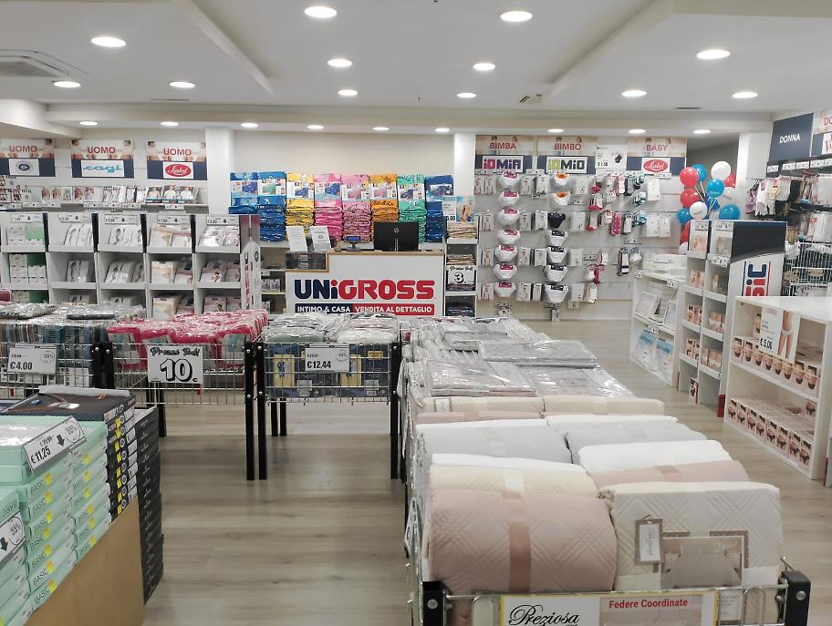 Unigross è una catena specializzata in intimo, abbigliamento casa e biancheria, che negli ultimi anni si è distinta per un’offerta ampia, accessibile e sempre aggiornata, pensata per tutta la famiglia. L’obiettivo è chiaro: portare nei territori prodotti di qualità a prezzi competitivi, rendendo il risparmio semplice e concreto ogni giorno.