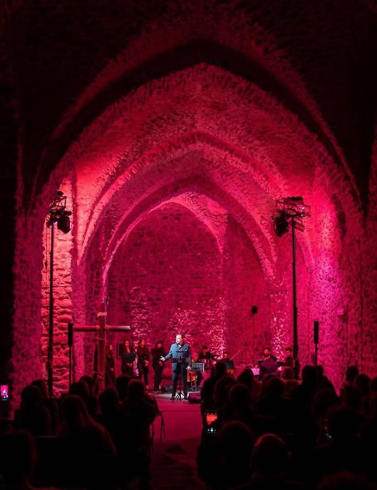 L’impianto scenico è arricchito da una componente musicale di grande impatto, affidata alle voci dei Gospel Italian Singers e alle esecuzioni del Melos Ensemble, diretti dal maestro Francesco Finizio. Un accompagnamento che trasforma lo spazio sacro in un luogo di ascolto e meditazione, dove parola e musica si fondono.