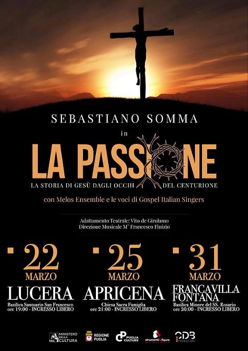 FRANCAVILLA FONTANA – Un appuntamento di forte impatto spirituale e artistico si inserisce nel calendario della Settimana Santa con l’arrivo, per la prima volta nel Brindisino, dello spettacolo “La Passione” interpretato da Sebastiano Somma. L’evento, terza tappa di un mini tour che ha già registrato ampia partecipazione a Lucera e Apricena, è in programma il 31 marzo nella Basilica Minore del Santissimo Rosario.