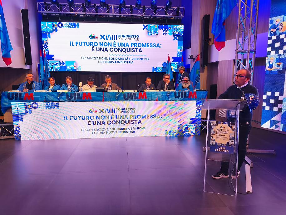 Ai lavori della prima giornata hanno preso parte il segretario generale Uilm Taranto Davide Sperti, il coordinatore Uilm Puglia Riccardo Falcetta, il segretario UIL Puglia Andrea Toma, il coordinatore UIL Taranto Gennaro Oliva e il segretario generale Uilm nazionale Rocco Palombella.