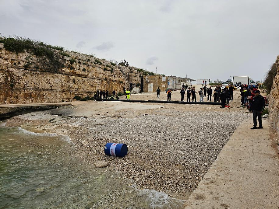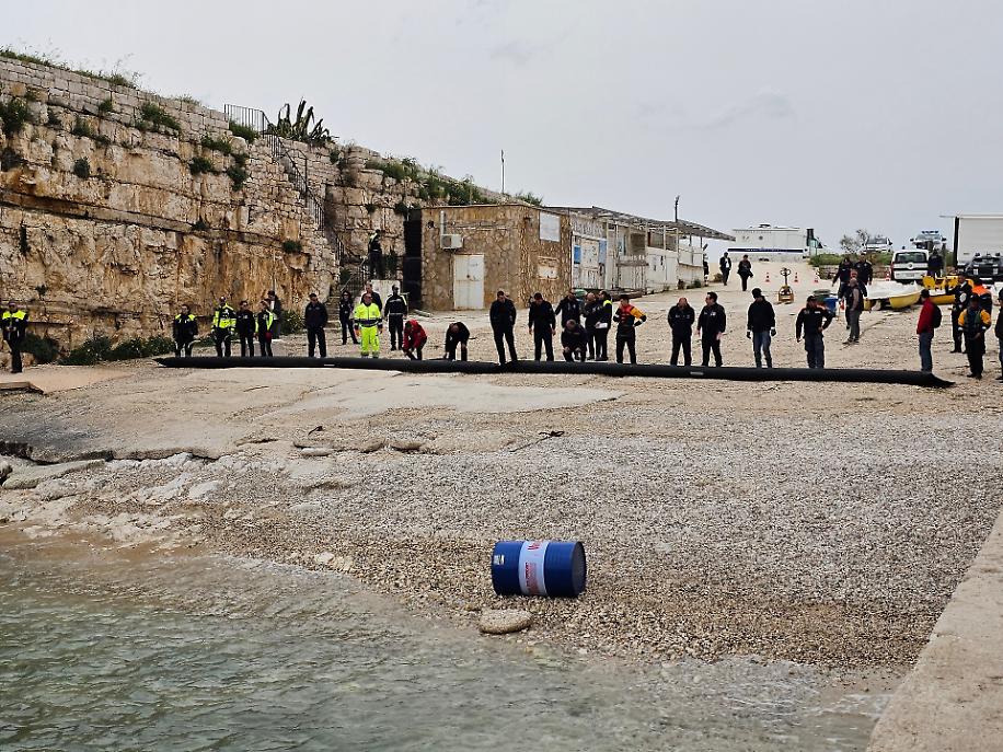 Lo scenario simulato ha riguardato uno sversamento di idrocarburi in mare, con il ritrovamento di un fusto e la dispersione di sostanze oleose nello specchio acqueo di Cala Paura, configurando una situazione di emergenza locale.