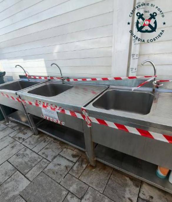 In particolare, gli operatori hanno individuato un impianto abusivo che prelevava acqua di mare tramite una pompa, convogliandola direttamente nei lavelli utilizzati per la lavorazione degli alimenti. L’acqua veniva impiegata per il lavaggio e la preparazione di ricci e altri prodotti ittici destinati al consumo.
