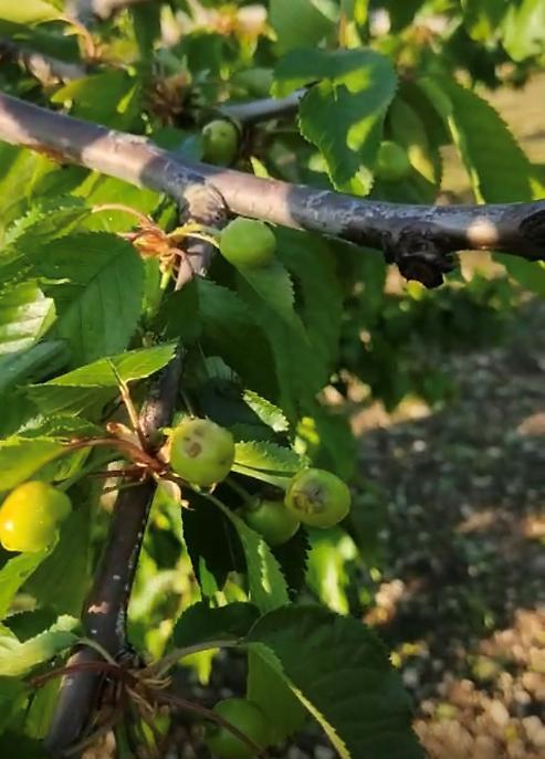 L’impatto più rilevante riguarda la produzione cerasicola, in un momento decisivo del ciclo produttivo. I chicchi di grandine hanno provocato la caduta dei frutti in fase di crescita e danneggiato quelli rimasti sugli alberi, compromettendo in modo significativo qualità e possibilità di commercializzazione.