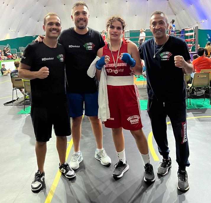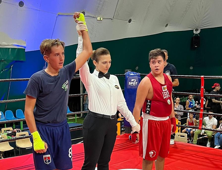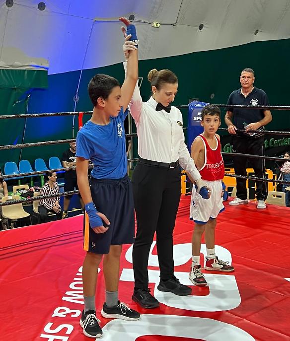 Questo l’andamento della nutrita squadra partecipante della Quero-Chiloiro Taranto: pareggio di buona prospettiva della debuttante Claudia Porfiri con Francesca Bianco della Vincenzo Avolio Boxe Castrovillari negli Youth 63 kg; Giacomo Gioioso ha firmato il più bel match, superando Andrea Mendicino dell’Asd Group 15 Lamezia Terme negli Elite I Serie 71 kg dopo un match combattuto; Salvatore Pugliese (Junior 75 kg) ha battuto Alessandro Macina della Portoghese Bari; negli Junior 66 kg Nicola Cesarano batte lo Youth Ivano Lobascio della Portoghese Bari; vittoria di Antonio Palmitesta, negli Junior 63 kg, nel match sul buon avversario Youth Vito Giotta (Vincenzo Avolio Boxe Castrovillari); negli Elite 63.5 kg Antonio Di Carlo è vincente in modo netto su Emanuele Capoccello della Gymnasium Centro Fitness San Pancrazio Salentino; Luca Intermite, negli Junior 52 kg, è stato battuto dall’idolo di casa Franco Antonazzo della Terra D’Otranto Matino. Questi i risultati a Parabita negli Sparring-Io: sconfitta ma dopo una bella gara di Giovanni De Giorgio con Ivan Nuccio dell’Alex Boxe Tricase negli Allievi -40 kg; negli Allievi 50+ kg George Caforio ha battuto Joele Pizzolante dell’Alex Boxe Tricase; negli Allievi -50 kg Salvatore Vitiello ha battuto Andrea Bello della Gymnasium Centro Fitness San Pancrazio; l’Allievo +50 kg Samuele Del Gaudio si è imposto su Davide Yildirim dell’Authentic Gym Fasano.