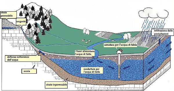 É fattibile; anche nelle falde meno ricche, collocate in zone semiaride e con pochissima pioggia, l’acqua rimane nel terreno da 20 a 70 anni, dicono gli esperti. Basta studiare una gestione intelligente, per non depauperare una fonte di ricchezza così importante. Per tenere accesi i riflettori su questo “vitale” argomento, inoltre, ogni tre anni, il World Water Council (worldwatercouncil.org) organizza il World Water Forum (worldwaterforum.org), che quest’anno si terrà dal 21 al 26 marzo a Dakar, in Senegal. Il prossimo sarà probabilmente in Italia. Ma cosa sono le “acque sotterranee” o “di falda”? Anche se non è a tutti noto, l’acqua di falda è quella che arriva ai rubinetti di casa nostra. La falda è come un immenso fiume sotterraneo che scorre sotto i nostri piedi a profondità che variano moltissimo ma che può arrivare anche a 2-3 metri dall’asfalto o addirittura sopra, sgorgando in fonta-nili e sorgenti. La maggior parte delle città italiane attinge proprio da questa grande (ma NON inesau-ribile!) risorsa idrica per dare da bere e non solo, ai suoi abitanti. Attraverso pozzi dotati di grosse pompe si distribuisce l’acqua negli acquedotti raggiungendo case e industrie.