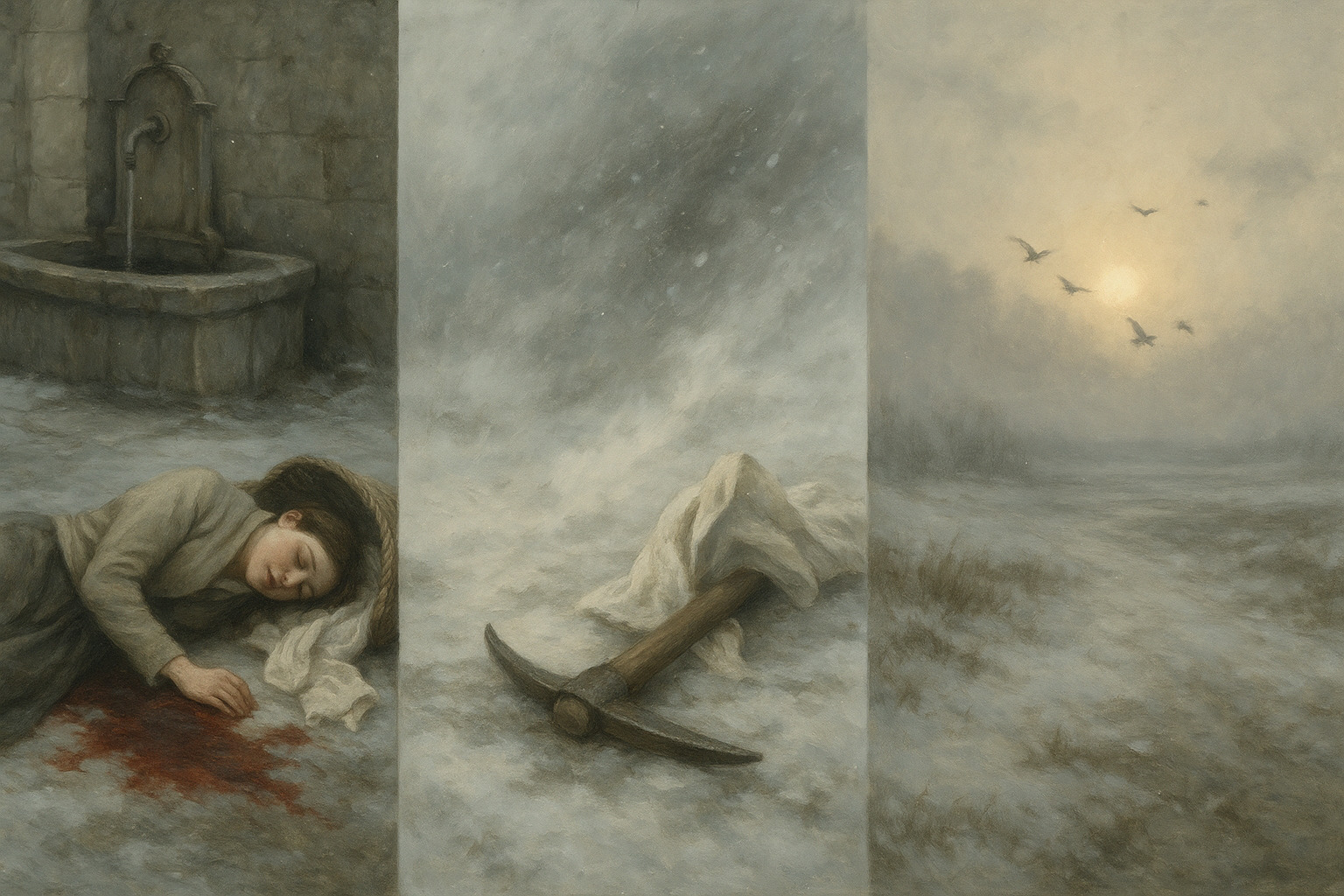 La trovarono a terra con gli occhi rivolti al cielo gelido di gennaio. Era immobile al centro di un’enorme macchia di sangue ormai gelato. Tra le mani teneva ancora stretta la picozza di nonno Vittorio.