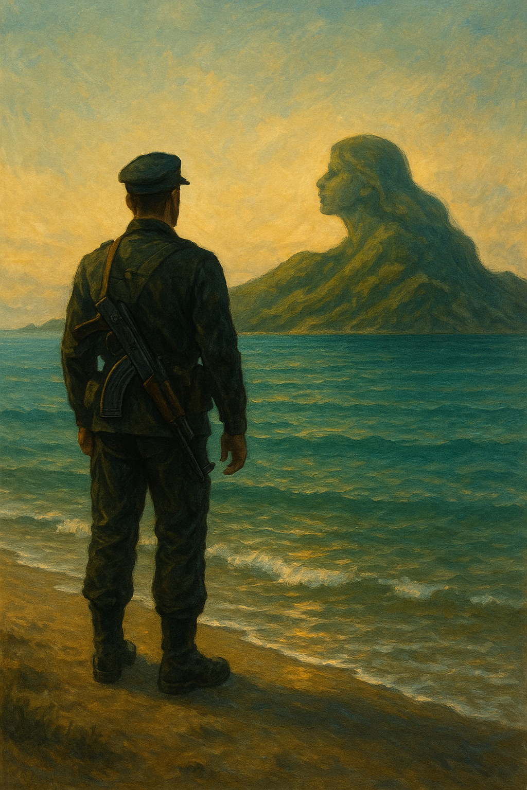 Da quel momento il ragazzo non esisteva più. Al suo posto, adesso, c’era un soldato. Un soldato che avrebbe incendiato il mondo intorno a sé. Capì subito che tornare indietro non sarebbe stato più possibile. E non tornò indietro. Anzi, si distinse subito dal resto della truppa: l’abito aveva fatto il monaco. Era spietato, crudele, astuto, non chiedeva nulla se non di portare a termine le missioni che gli venivano affidate, senza porsi domande sul perché venissero richieste carneficine di gente inerme, pacifica, sottomessa. Era normale e giusto che venisse scelto, vista la sua completa adesione alle missioni e la sua fedeltà incondizionata. Fu scelto per una missione segreta, pericolosa, importante. Quando, per approdare sull’isola, fu calato in mare dentro una piccola barca, la vide nella sua interezza. Gli scogli, le spiagge, i profili delle piccole montagne e la vegetazione formavano una lunga, sinuosa figura. Gli sembrò di vedere una donna distesa sul mare. Mentre si avvicinava, solo, vide la testa della donna girarsi verso di lui, quasi a sincerarsi che arrivasse incolume. Fu un attimo di smarrimento, ma subito si riprese: «Sono i vapori dell’acqua assieme ai raggi del sole a creare questa distorsione dell’immagine. È normale!»