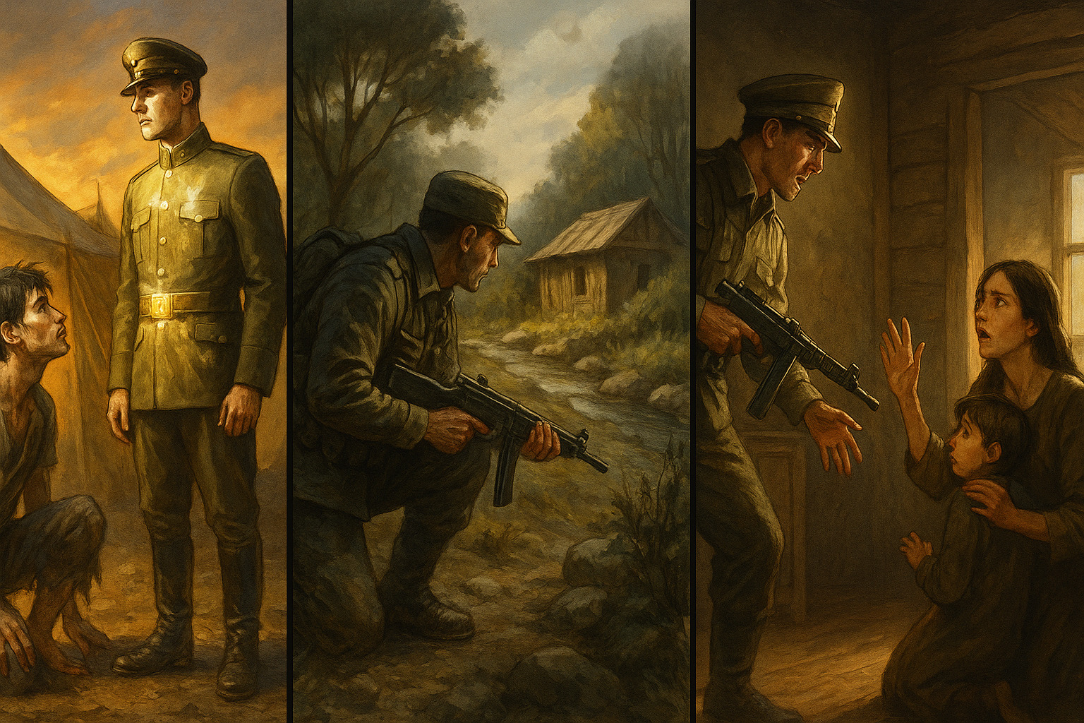 Il soldato era confuso. L’arma calò verso il basso. Vide la donna e il ragazzo che imploravano di fermarsi. Vide sua madre, vide se stesso bambino tra le sue braccia.