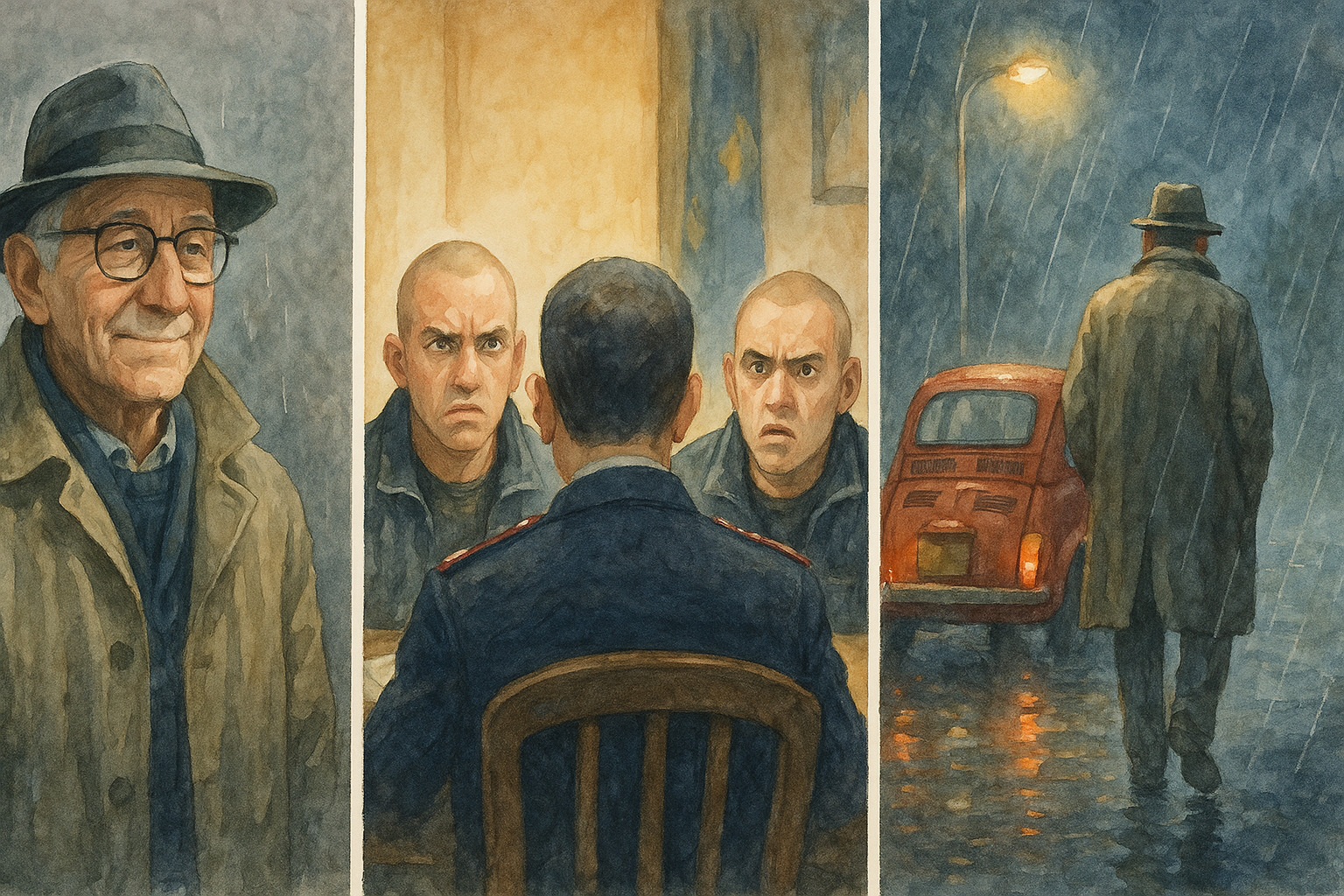 «Entra, entra, non stare sotto la pioggia» disse il giovane, spalancando la portiera. Oreste notò che il linguaggio era passato dal “lei” al “tu” e, per di più, l’inflessione della parlata gli sembrava ora leggermente diversa. Quell’impressione lo mise in allarme.