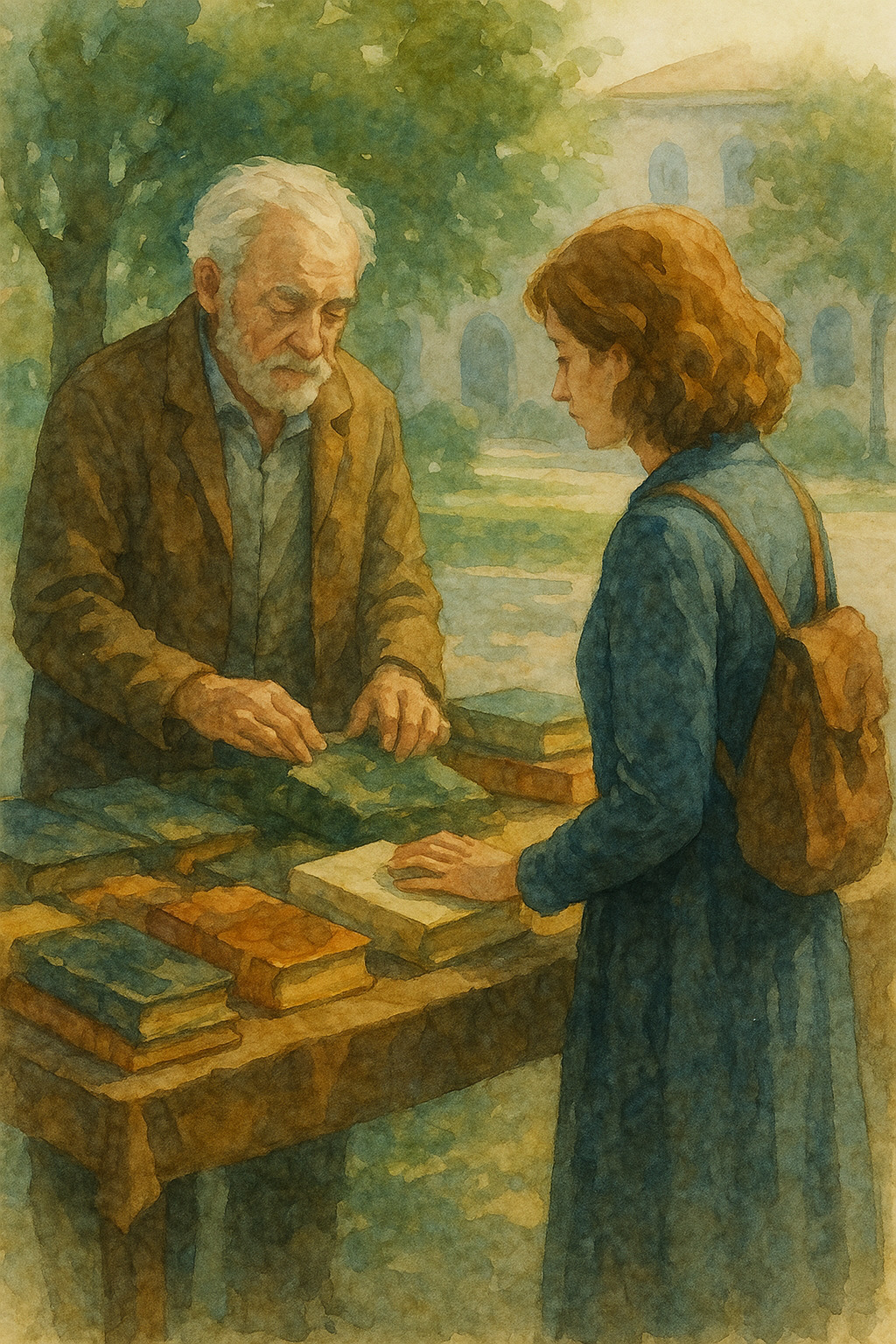 Era un venditore insolito; non ero certa che traesse un vero profitto da quell’attività — o, almeno, non un profitto economico. Le emozioni che ricavava non avevano prezzo. Con il tempo aveva imparato a riconoscere i clienti: alcuni si affidavano completamente al suo intuito nella scelta del libro, e di rado tornavano per rivenderlo, rimettendolo in circolo. Le storie, in fondo, sapevano in quali case depositarsi.