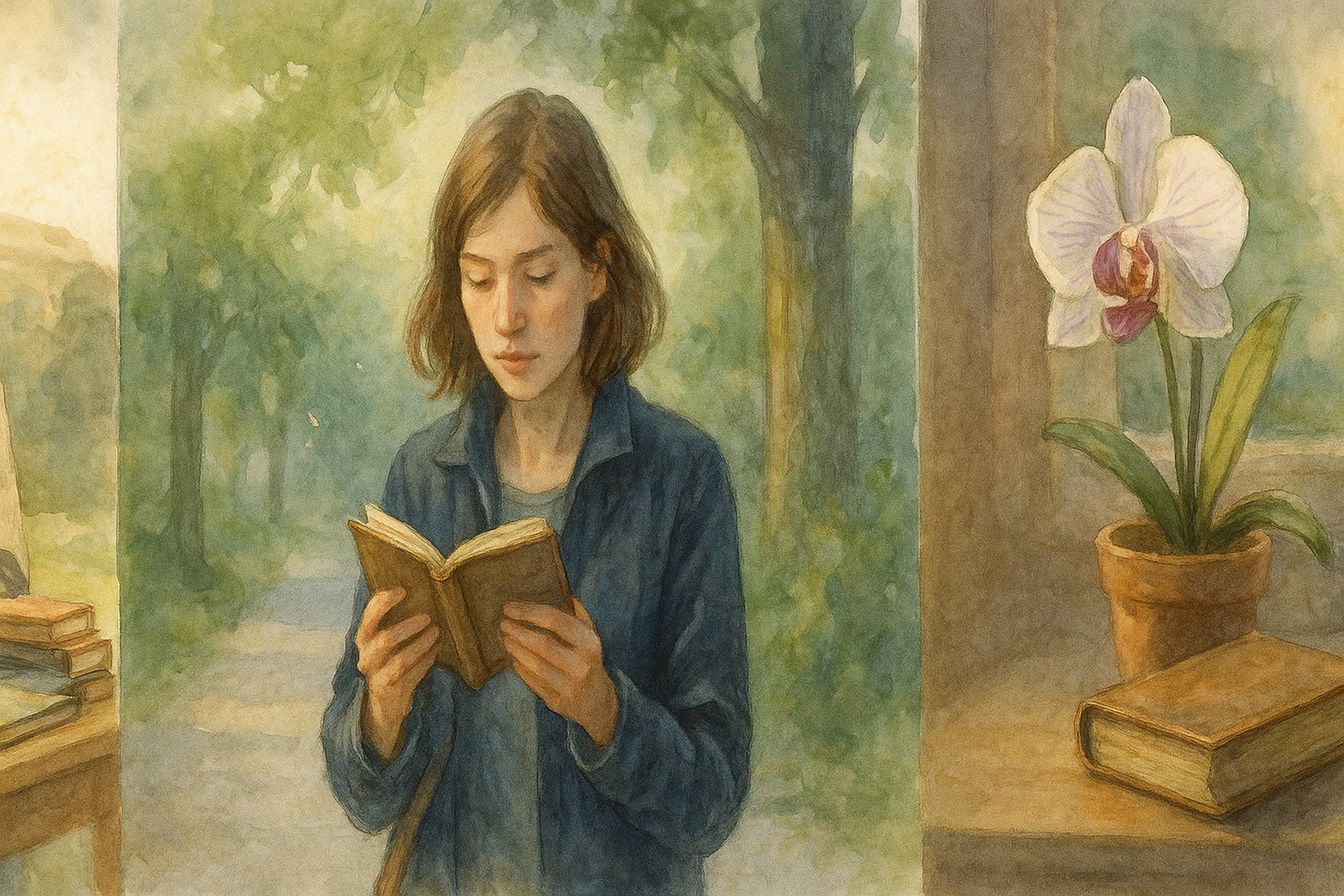 Lo poggiai su un tavolinetto di vetro, sotto la finestra, accanto a una pianta di orchidea dai fiori bianchi striati di viola, in piena fioritura. Era il suo posto: una bellezza chiusa, custodita vicino a una bellezza esposta.