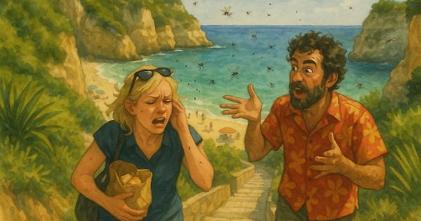 Furono costretti, data la tarda ora per il pranzo, a puntare su un locale situato direttamente sull’arenile. Praia da Cova Redonda è incastonata fra scogli scolpiti dal mare e dal vento e si raggiunge scendendo una lunga ma comoda scala fra la vegetazione lussureggiante. Qui, appena usciti dall’auto, furono letteralmente aggrediti da uno sciame di mosche e zanzare che pose un severo punto interrogativo sulla buona riuscita, non solo di qualunque pasto, ma dell’intera giornata.