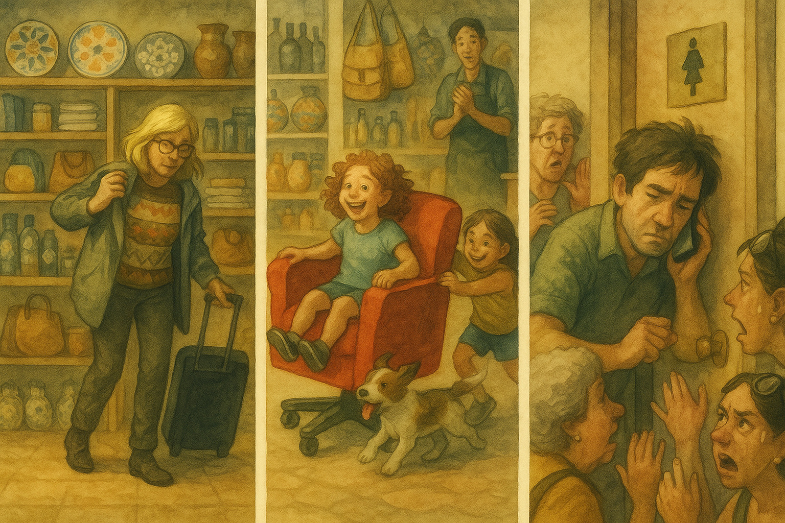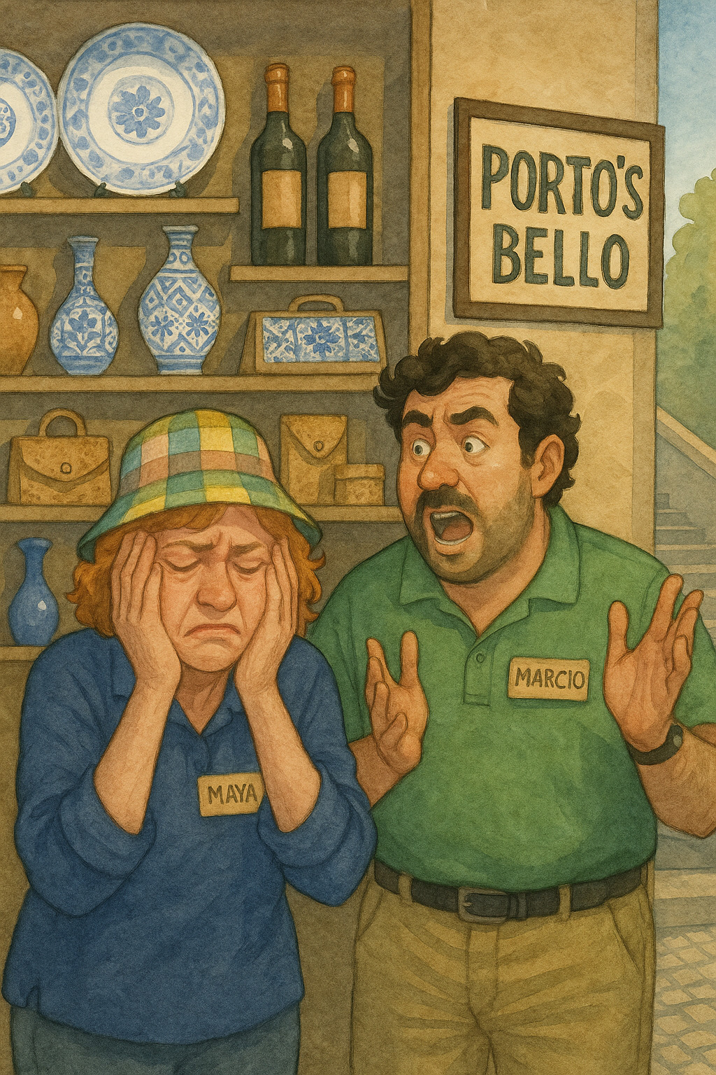 Lo staff del Porto’s Bello terminava il turno spossato più per i viaggi di una sedia particolare, messa a disposizione dei clienti stanchi. Si trattava di una poltrona rossa con le rotelle che vagava in tutto il negozio con i bambini a bordo e i cani in braccio, spinta dai genitori nel reparto in cui erano interessati ad acquistare. Gli anziani si riposavano tra un’escursione e l’altra degustando liquori; gli americani sudati vi stazionavano aspettando le mogli.