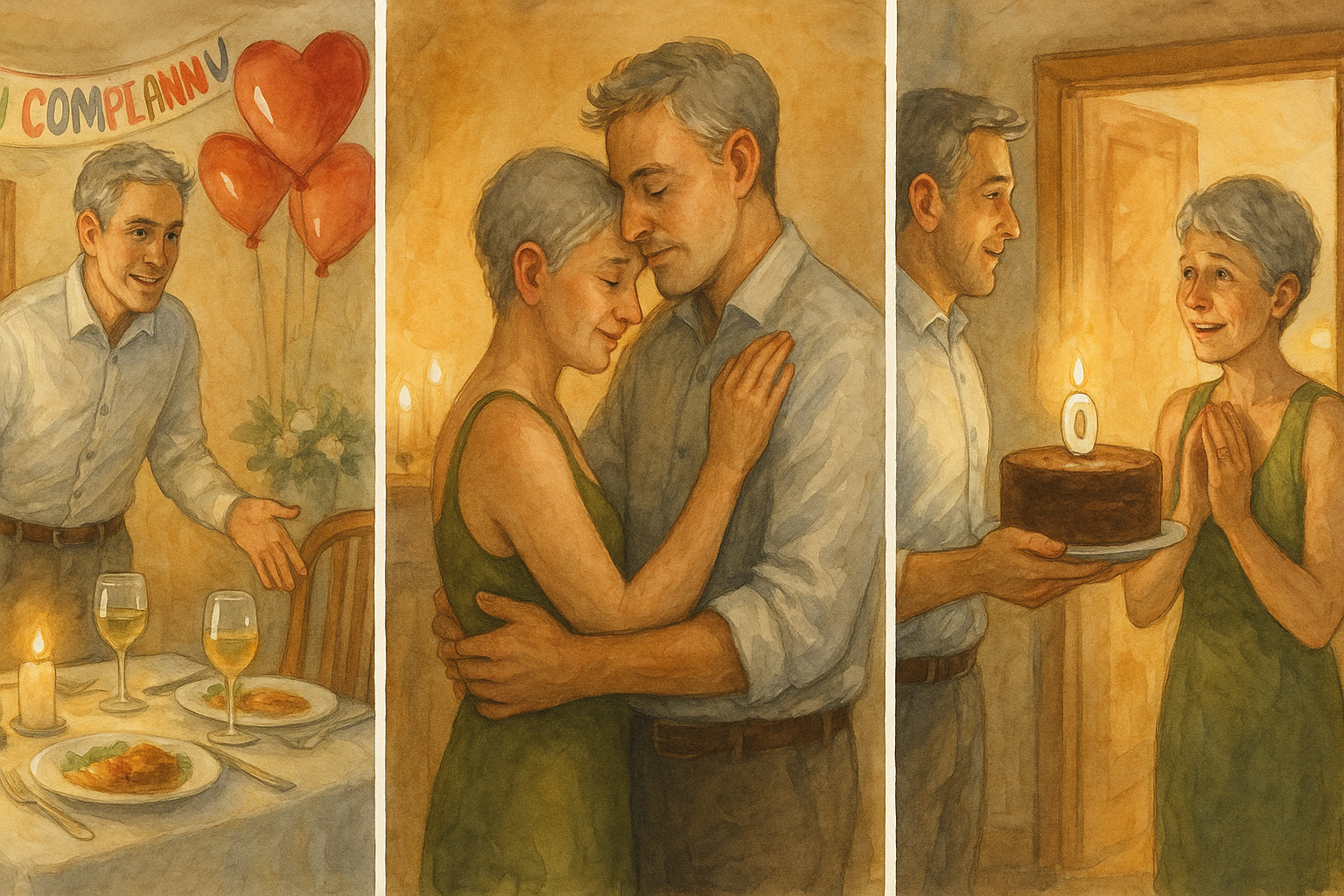 Candele accese in giare di vetro, disposte sulle mensole del salone, diffondono una fragranza misteriosa, dolce e speziata, richiamo di note di esotica cannella e di chiodi di garofano. Palloncini riempiti di elio, a forma di cuore, rossi, volano sul soffitto; un festone multicolore a striscione, “Buon compleanno”, è appeso sopra il divano. «Di chi è il compleanno?» Arrossisce. La timidezza, merce rara in un mondo di spavaldi, è ciò che di lui mi ha sempre affascinato, dall’inizio della nostra conoscenza.