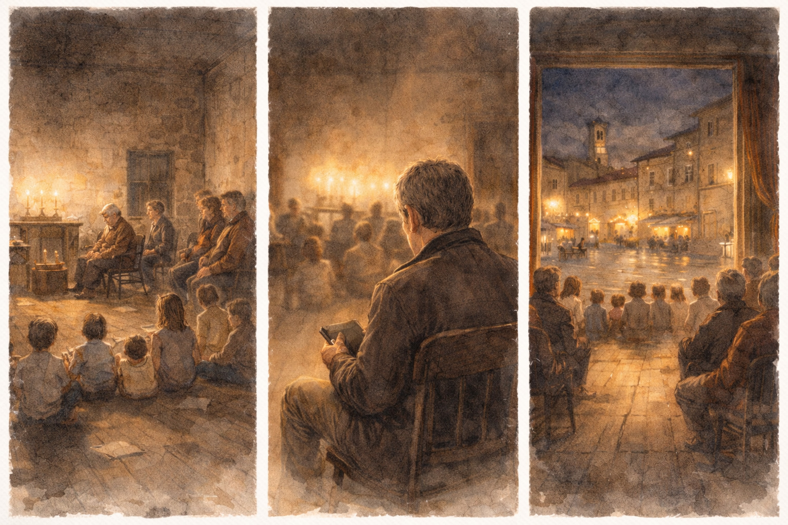 La porta era spalancata, le luci accese. La compagnia improvvisata aveva deciso di aprire le prove al pubblico. C’erano bambini seduti per terra, anziani appoggiati ai muri, turisti incuriositi. Nessuno parlava. Tutti ascoltavano.