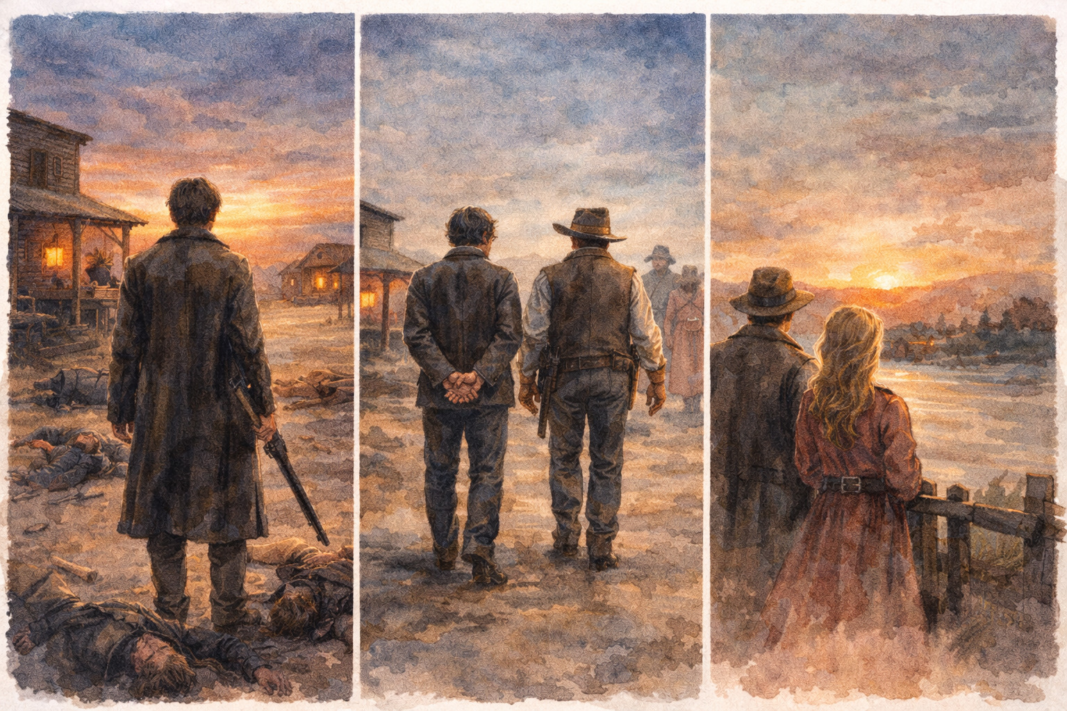 A un chilometro di distanza, qualcuno li osservava: Jeremy Stanton, membro della banda di Jimmy Dalton. Riposto il cannocchiale, montò in sella e galoppò verso il rifugio – una casa di campagna abbandonata – ad alcuni chilometri.