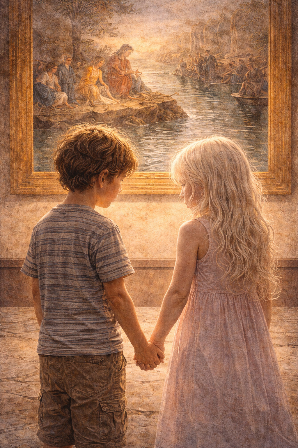 Il quadro, con la reliquia che galleggia, lo ipnotizzò. Luca fissò le figure, le onde dipinte e, senza saperlo, il suo respiro affannoso si accordò al ritmo calmo e pittorico dell’acqua. Sara gli sorrise. Lui rispose con un piccolo suono gutturale, quasi una nenia. La mano di Sara sfiorò di nuovo la sua, e questa volta Luca permise al contatto di restare: quel tocco leggero era un ponte tra universi segreti, una comunicazione pura.