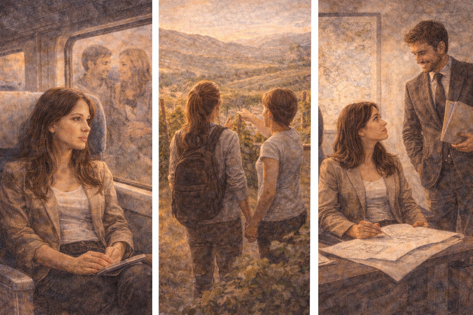 Aveva prenotato un soggiorno in un agriturismo nella Langa astigiana. Partì con un’amica, alla quale aveva raccontato della sua storia platonica con il “tipo del treno”, così lo chiamava. Una vacanza di escursioni su sentieri CAI, di passeggiate a cavallo e degustazioni di vini e cibi locali. Così tutti i pensieri vennero accantonati. Di sera uscivano per sagre e manifestazioni. I “Suoni” proposti dalle colline di Langhe e Roero erano stati imperdibili, appena in tempo: la manifestazione terminava il 10 agosto. Un bellissimo percorso fatto di cultura e musica, le cui radici erano pregne di musica classica. Il vino: erano rimaste affascinate dal Barolo, un rosso a Denominazione di Origine Controllata e Garantita. Una sera a cena un sommelier ne aveva decantato tutte le caratteristiche: “Un rosso a note fruttate e floreali (viola e vaniglia), che si accompagna a note più speziate. Un vino potente, equilibrato ed elegante, di grande personalità”. In effetti, di personalità ne aveva da far girare la testa!
