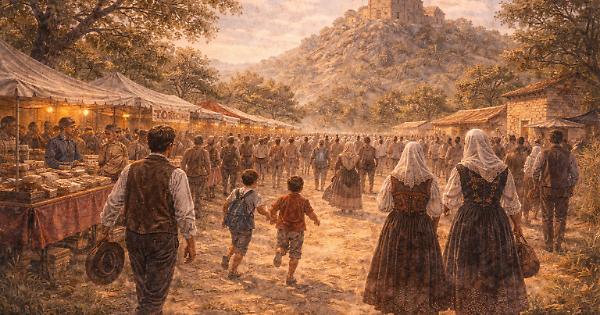 Capannelli di persone ascoltavano a bocca aperta chi decantava pozioni miracolose, capaci di curare tutto, dai calli al mal di fegato, e di appianare faide familiari, se assunte recitando brebus appositi. Salumi appetitosi e dolciumi venivano guardati con rispetto, leccandosi appena le labbra con la punta della lingua, lasciando che sos istranzos venuti da lontano, e più facoltosi, acquistassero senza badare al costo, per poi gustare il tutto all’ombra del fitto bosco che ricopriva la vallata.